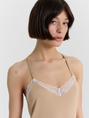 Очаровательная ночная сорочка из нежной вискозы. Длина мини, полуприлегающий силуэт, v-образный вырез горловины с декоративной кружевной отделкой, изящные бретели-спагетти... В такой сорочке сны будут исключительно приятными! _x000D_