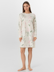 Сорочка свободного силуэта из трикотажной кулирки. В составе полотна – только натуральный хлопок! Горловина круглой формы, рукава длинные. Спущенная линия плеча и углубленная пройма дарят особый комфорт. Очаровательно!