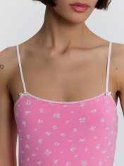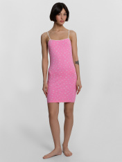 Эта женская ночная сорочка — элегантное и комфортное решение для сна. Прилегающий силуэт мягко подчеркивает фигуру, создавая женственный и изящный образ. Мини-длина придает изделию легкость, а верхний край обработан мягкой тесьмой, обеспечивающей комфортное прилегание. Тонкие бретели-спагетти создают утонченный и легкий акцент, добавляя воздушность модели. Низ изделия аккуратно обработан швом в подгибку, что делает сорочку не только красивой, но и долговечной. Изготовленная из хлопковой кулирки, она дарит ощущение мягкости и естественной воздухопроницаемости, позволяя коже дышать и обеспечивая комфортный отдых. Прекрасный выбор для тех, кто ценит сочетание простоты, удобства и элегантности в домашнем гардеробе. Отлично подходит для уютных вечеров и спокойного сна! _x000D_