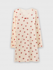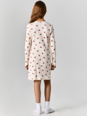 Сорочка полуприлегающего силуэта для девочек. Горловина V-образной формы, обработана кружевом Devsel L20166-1.5, ширина 15мм. Рукава длинные втачные, одношовные. Перед и спинка цельнокроеные. Низ изделия и рукавов обработаны на 2-х игольной плоскошовной машине швом в подгибку._x000D_ Декор по заданию - бантик (6737-0011А)