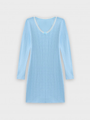 Сорочка полуприлегающего силуэта для девочек. Горловина V-образной формы, обработана кружевом Devsel L20166-1.5, ширина 15мм. Рукава длинные втачные, одношовные. Перед и спинка цельнокроеные. Низ изделия и рукавов обработаны на 2-х игольной плоскошовной машине швом в подгибку._x000D_ Декор по заданию - бантик (6737-0011А)