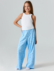 Брюки домашние слегка расширены к низу. Пояс цельнокроеный с эластичной тесьмой внутри (Rv40), ширина 40 мм._x000D_ Низ застрочен швом в подгибку. _x000D_ _x000D_