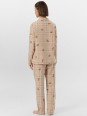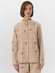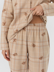 Пижама женская домашняя в клетку — это уют и гармония для вашего отдыха. Набор из рубашки и брюк выполнен из хлопка, который дарит коже нежность, воздух и комфорт. Свободный силуэт рубашки с заниженной линией плеч и длинными рукавами не сковывает движений, а застежка на пуговицы добавляет классическую элегантность.<br>_x000D_ <br>_x000D_ Брюки с широким эластичным поясом мягко сидят на талии, не оставляя следов, а клетчатый рисунок придает образу теплоту и домашний шарм. Этот комплект подойдет для сна, утреннего кофе или отдыха с книгой — он сочетает практичность и стиль._x000D_ Если вы ищете, где купить домашнюю пижаму, которая объединяет натуральные материалы, продуманный крой и дизайн, этот набор станет вашим любимым выбором._x000D_ _x000D_