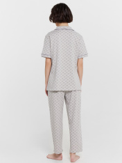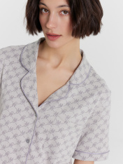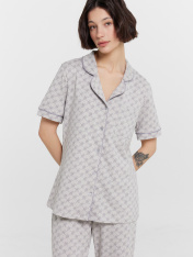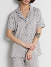 Этот женский домашний комплект — идеальное сочетание комфорта и элегантного дизайна! Рубашка прямого силуэта с отложным воротником, дополненным аккуратным кантом по краю воротника, который добавляет изысканный акцент. Накладной карман на груди делает модель функциональной, а короткие рукава обеспечивают удобную посадку. Центральная застежка с петлями и пуговицами позволяет легко регулировать посадку, а низ рубашки застрочен в подгибку для аккуратного финишного вида. Бриджи свободного силуэта сэластичной талией создают комфортную посадку, мягко адаптируясь к фигуре. Нижние края обработаны швом вподгибку, что гарантирует долговечность и эстетичность изделия. Комплект выполнен из хлопковой кулирки — мягкого, воздухопроницаемого материала, который приятно прилегает к коже и обеспечивает комфорт на весь день. Отличный вариант для отдыха дома, легких вечерних прогулок или уютных моментов! Этот комплект сочетает в себе стиль, удобство и качественные материалы, создавая безупречный образ для повседневного комфорта.