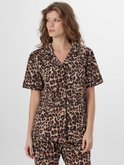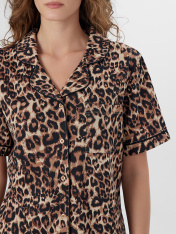Пижама женская с бриджами — это элегантный комплект для комфортного отдыха и крепкого сна. В набор входит стильный джемпер с отложным воротником и свободные бриджи, созданные из мягкого дышащего материала. Классический бежевый цвет добавляет образу утонченности, а продуманный крой гарантирует идеальную посадку.<br>_x000D_ <br>_x000D_ Джемпер прямого силуэта дополнен накладным карманом и застежкой на пуговицы. Короткие рукава с аккуратными манжетами и кантом подчеркивают внимание к деталям. Женская пижама сбриджами на эластичном поясе обеспечивает полную свободу движений, не сковывая даже во время сна. Мягкая резинка внутри пояса бережно фиксирует изделие на талии.<br>_x000D_ <br>_x000D_ Комплект идеален для тех, кто ценит не только комфорт, но и стиль в домашнейодежде. Пижама легко сочетается с любым настроением, даря ощущение уюта и расслабленности после долгого дня. Качественная обработка швов и долговечные материалы делают этот набор практичным выбором для каждодневной носки._x000D_