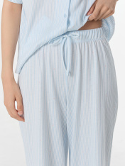 Домашний комплект — нежность и комфорт для вашего отдыха. Набор из свободной рубашки и брюк выполнен из натурального хлопка, который обеспечивает идеальную воздухопроницаемость и мягкость._x000D_ Рубашка с отложным воротником и короткими рукавами создаетэлегантный расслабленный образ. Центральная застежка на пуговицах и аккуратная обработка всех швов подчеркивают качество исполнения. Брюки с эластичным поясом на кулиске мягко сидят на талии, не стесняя движений.<br>_x000D_ <br>_x000D_ Нежный оттенок и классический крой делают комплект универсальным для разных ситуаций. Мягкая ткань не раздражает кожу и сохраняет форму после стирок. В этом комплекте вы будете чувствовать себя уютно и выглядеть стильно даже в моменты отдыха — от утреннего кофе до спокойноговечера с книгой. _x000D_