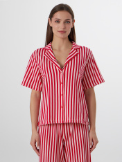 Домашний комплект — нежность и комфорт для вашего отдыха. Набор из свободной рубашки и брюк выполнен из натурального хлопка, который обеспечивает идеальную воздухопроницаемость и мягкость._x000D_ Рубашка с отложным воротником и короткими рукавами создаетэлегантный расслабленный образ. Центральная застежка на пуговицах и аккуратная обработка всех швов подчеркивают качество исполнения. Брюки с эластичным поясом на кулиске мягко сидят на талии, не стесняя движений.<br>_x000D_ <br>_x000D_ Нежный оттенок и классический крой делают комплект универсальным для разных ситуаций. Мягкая ткань не раздражает кожу и сохраняет форму после стирок. В этом комплекте вы будете чувствовать себя уютно и выглядеть стильно даже в моменты отдыха — от утреннего кофе до спокойноговечера с книгой. _x000D_