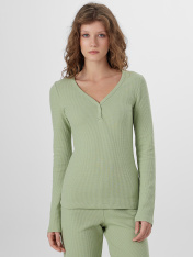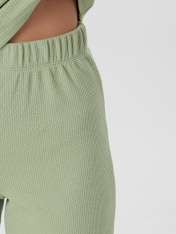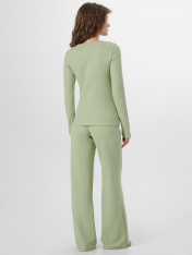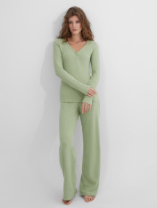 Домашняя пижама для женщин, состоящая из джемпера и брюк, создает гармоничный образ для уютного отдыха. Приталенный джемпер с изящным V-образным вырезом мягко подчеркивает силуэт, а длинные рукава обеспечивают комфорт. Элегантную деталь добавляет застежка на кнопки по переду, которая не только функциональна, но и становится стильным акцентом.<br>_x000D_ <br>_x000D_ Брюки прямого кроя со средней посадкой удобно сидят на фигуре благодаря широкому поясу с эластичной тесьмой. Все срезы изделий тщательно обработаны, что подчеркивает внимание к качеству исполнения. Мягкий хлопковый материал с добавлением эластана нежно облегает тело, позволяя коже дышать, и сохраняет форму даже после стирок. Этот комплект станет воплощением домашнего уюта, где каждая детальпродумана для вашего расслабления и прекрасного самочувствия._x000D_ _x000D_ _x000D_ _x000D_ _x000D_
