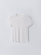 Комплект женский состоит из джемпера и шорт. Джемпер полуприлегающего силуэта. Горловина круглая, обработана обтачкой из основного полотна. Рукава втачные короткие. Нижний срез джемпера и рукавов обработан микрооверлоком. Шорты прямые, короткие, посадка средняя. Пояс цельнокроеный с эластичной тесьмой внутри (внутр. 20мм 20RV). Нижний срез обработан микрооверлоком.