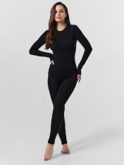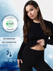 Фуфайка женская из линейки Thermo Line. Выполнена из материала, изготовленного по австрийской технологии. Полые волокна полиэстера Trevira изолируют холод, быстро реагируют на изменения температуры тела, предотвращая перегрев и переохлаждение. Вискоза Viloft эффективно впитывает и отводит влагу, а также придаёт нитям мягкость и увеличивает прочность. Все используемые материалы безопасны, не вызывают аллергию, позволяют коже дышать и надежно защищают от холода. Изнанка материала ворсистая, тактильно приятная. Рукава термо фуфайки длинные, вырез горловины V-образный. Может использоваться ежедневно, а также для занятий спортом, охотой, рыбалкой и активного отдыха. Австрийская технология производства ткани позволяет термобелью выдерживать температуры до -20 градусов Цельсия. Погода не внесет коррективы в ваши планы!