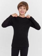 Классический прилегающий джемпер для мальчиков. Умный материал фактуры "термо" удерживает тепло и отводит избыточную влагу. Особый способ вязания полотна, предуcматривающий воздушные ячейки, соединяющие основу полотна с верхним слоем, придаёт изделию особые гигиенические и термические свойства. Австрийская технология производства ткани позволяет выдерживать экстремальные температуры до -20 градусов Цельсия. Изделия из такой ткани могут использоваться ежедневно, для занятий спортом, охотой, рыбалкой и активного отдыха.