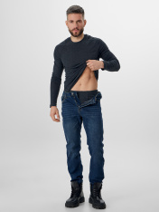 Комплект состоит из фуфайки и кальсон._x000D_ Комплект выполнен из трикотажного полотна рибана "термо", кулирка._x000D_ Фуфайка прилегающего силуэта._x000D_ Горловина V-образной формы, обработана обтачкой из основного полотна._x000D_ Рукава 2-хшовные, реглан. Рельефы переда, спинки и рукавов стачены на специальной машине цепного стежка, швом "флэт-лок"._x000D_ Нижние срезы спинки и переда фигурной формы, спинка удлиненная. _x000D_ Нижние срезы фуфайки и рукавов обработаны швом вподгибку, на 2х-игольной плоскошовной машине,_x000D_ с открытым срезом._x000D_ Кальсоны облегающего силуэта, без боковых швов._x000D_ Пояс цельнокроеный с эластичной тесьмой внутри._x000D_ На передней части усилительная планка на подкладке из кулирки. Задняя деталь притачена _x000D_ к передне-задним частям на специальной машине (строчка флэт-лок)._x000D_ Нижние срезы с притачными манжетами._x000D_