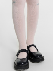 Рис.3218 Гладкие колготки с рисунком в виде блестящего бантика, рисунок образован с использованием люрексовой нити.
