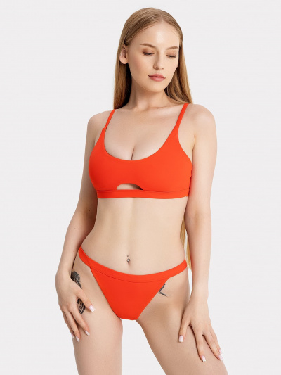 Стильный костюм купальный женский состоит из бюстье и трусиков слипов. Бюстье купальное с чашками-вкладышами. Деталь лифа цельная с декоративным отверстием по центру ниже уровня груди. Горловина, проймы и декоративная прорезь. Трусы купальные слипы с высокой линией талии. Ластовица и фронтальная часть на подкладке. По бокам протяжки из окантовки. Красивый и элегантный. Рекомендуем этот купальник для отдыха на пляже!