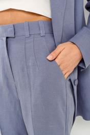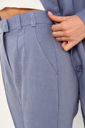 Брюки женские зауженные к низу. На передних половинках брюк обработаны боковые карманы в швах.Застежка на тесьму молния с потайной пуговицей и брючным крючком. Пояс брюк обрабатывается корсажной тесьмой. По поясу настрочены шлевки для ремня. По передней половинке застрочены канты . Задние половинки с вытачками и заутюжеными кантами.