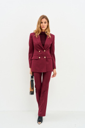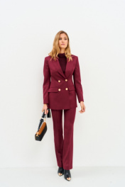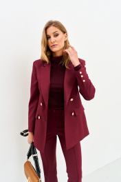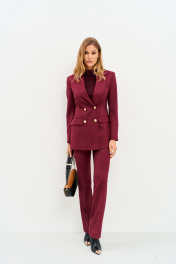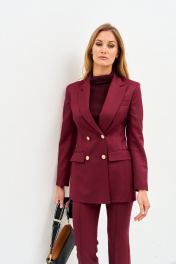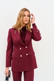 Жакет женский полуприлегающего силуэта на подкладке со смещенной бортовой застежкой на петли, пуговицы. Воротник пиджачного типа. Рукав втачной двухшовный с имитацией шлицы и отделочными пуговицами. Детали переда и спинки с рельфами. На деталях переда обработаны прорезные карманы с клапаном и двумя обтачками, на левой полочке обработан верхний прорезной карман с листочкой. Спинка со средним швом и двумя шлицами.длина изделия 73-77см, длина рукава 61-65см
