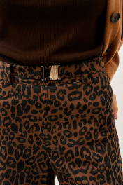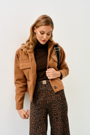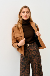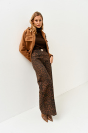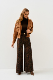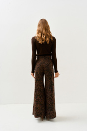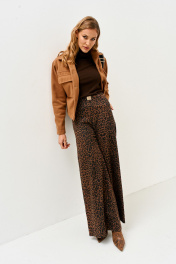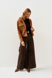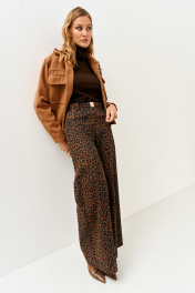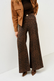 Брюки женские прямого силуэта расширенные к низу с притачным поясом. Застежка на тесьму молния в боковом шве. На задних половинках обработаны Накладные карманы.