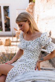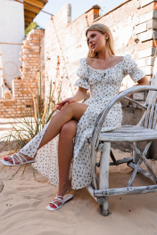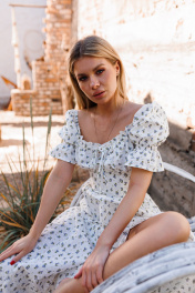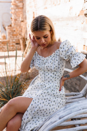 Платье летнее с драпировкой, рукав 34 см из хлопка Marshop М110-К белый_синие_цветы