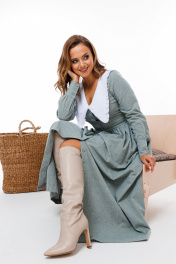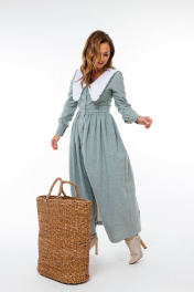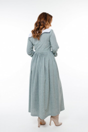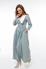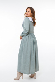 Платье приталенное с объемной юбкой, V-образным вырезом из хлопка Marshop М129 серо-зеленое