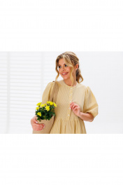 Платье расширенного силуэта с воланами. Стильное платье с втачным рукавом и отрезными воланами. Полочка и спинка отрезные по талии, с притачной планкой для застежки на пуговицы. Рукав объемный, до локтя, с мягкой сборкой по окату и низу, дополнен узкими манжетами. Два отрезных волана, собранных на сборку, добавляют изысканности. Длина платья — до середины икры. Ткань идет вареный хлопок-называется так, потому что прошла обработку горячей водой(энзимную стирку). Благодаря энзимной стирке на ткани образуется легкий неравномерный краш - эффект. Длина по спинке - 118-120 см,Длина платья по переду от точки основания шеи - 123 см, длина рукава - 33-34см.