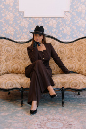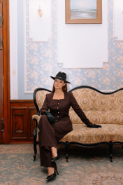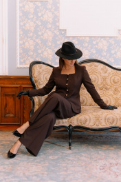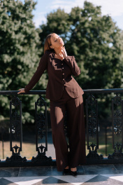 Супер удобный костюм для работы или школы! С первого взгляда восхищает своим уникальным дизайном: квадратный вырез, застежка на золотые пуговицы создают потрясающий модный воздушный образ! параметры готового изделия длина жакета 62-64 см длина рукава 62-63 см длина брюк 111 см 42 размер= ОГ 87 см, ОТ 70 см, ОБ 94 см 44 размер= ОГ 91 см, ОТ 74 см, ОБ 98 см 46 размер= ОГ 95 см, ОТ 78 см, ОБ 102 см 48 размер= ОГ100 см, ОТ 82 см ,ОБ 106 см 50 размер= ОГ 104 см, ОТ 86 см, ОБ 110 см 52 размер= ОГ 108 см, ОТ90 см, ОБ 114 см.