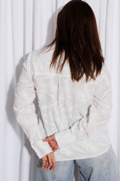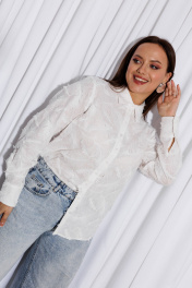 Рубашка с втачным рукавом и нагрудной вытачкой. По спинке кокетка . Длина по спинке 65- 67 см, Длина рукава 60-63 см. На ткани вышиты перья.