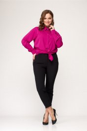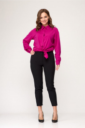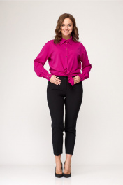 Брюки женские повседневные зауженного к низу силуэта и 7/8 длиной. Верхний срез брюк с притачным поясом. Брюки с застежкой на тесьму-молнию в среднем шве передних частей и застежку на петлю и пуговицу по концам пояса. Передние части брюк с боковыми карманами, наклонными к боковому шву. Задние части брюк с талиевыми вытачками. Низ брюк подогнут. По поясу расположены шлевки. Брюки со сгибами по передним и задним частям брюк.