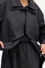 Представляем вашему вниманию стильное платье-тренч с двойным воротником, который прекрасно держит форму и добавляет образу изысканности. Украшено платье кокеткой с плавной изящной лекальной линией. Удобный пояс, поможет аккуратно подчеркнуть вашу линию талии, а застежки на кнопки в цвете оксид и красивые разрезы по бокам, придадут образу женственности и лёгкости. Глубокие карманы делают это платье еще более удобным и функциональным. Идеальный вариант для создания элегантного и стильного образа на любое мероприятие.