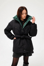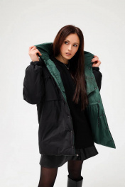 Представляем вам уникальную двухстороннюю дизайнерскую куртку! Она обладает интересным дизайном: с одной стороны черного цвета с брендированной стежкой на спине и рукавах, настрочнными карманами на груди и глубокими боковыми карманами.в швах. С другой стороны куртка выполнена в глубоком изумрудном цвете с кокеткой, которая имеет плавную красивую линию, и глубокими боковыми карманами. каждую и сторон можно приталить, испльзуя пояс с черной стороны и шнурок с изумрудой. Высокая горловина, которую можно носить стойкой или выкладывать воротничком, станет отличной защитой от непогоды. Эта куртка позволит вам создавать разные образы, меняя сторону в зависимости от вашего настроения и стиля. Качественные материалы, стильный дизайн и функциональность делают эту куртку отличным выбором для современного и стильного гардероба.
