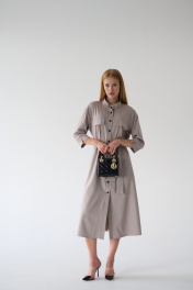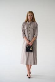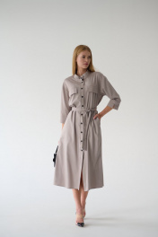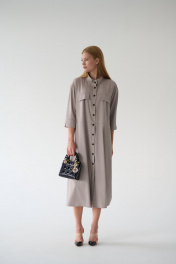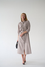 Платье-рубашка уже давно стало неотъемлемой частью женского гардероба. Прямой крой, длина миди, стойка, втачные рукава 3/4 на манжете с кокетливым разрезом, кокетка и клапаны на полочках, застёжка по всей длине на кнопки делают платье абсолютно универсальным. Строгий офисный образ или расслабленный лук для прогулки - решать вам! Регулируя количество застёгнутых кнопок можно удлинить линию декольте. Для удобства спереди боковые функциональные карманы с подкройным бочком, а внизу боковых швов предусмотрены разрезы. Для создания различных вариантов при стилизации платье укомплектовано поясом, который мягко подчеркнёт талию. Вы будете чувствовать себя комфортно в любую погоду, т.к. натуральные волокна в составе ткани обладают воздухопроницаемостью и гигроскопичностью. Рекомендации по уходу - на этикетке. Размеры соответствуют стандартной размерной сетке. Дополнительные замеры: Длина изделия по спинке 120см. Длина спинки до талии 42 см. Длина рукава 39см. Высота стойки 4,5см.