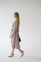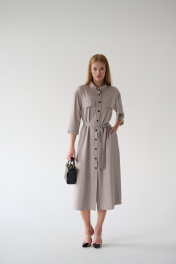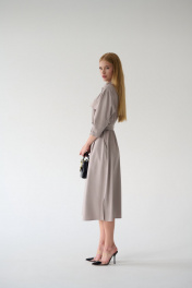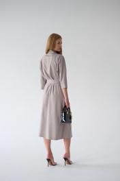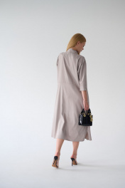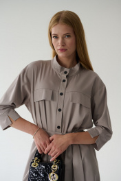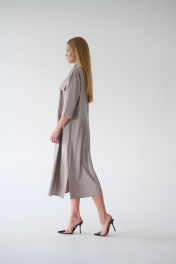Платье-рубашка серое миди с разрезами и поясом Мастер Мод 861с серо-кофейный