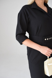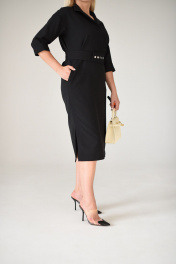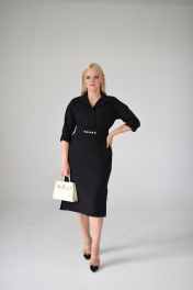 Платье миди с отложным воротником и поясом из текстиля Мастер Мод 862с черный