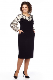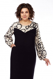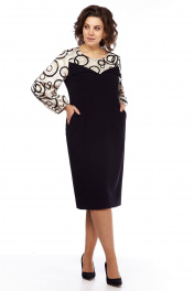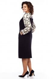 Платье женское, полуприлегающего силуэта, выполнено из 2х видов ткани: из блузочного атласа и основной плательной с легким стрейчем. Перед отрезной по линии талии с нагрудными и талиевыми вытачками. Карманы функциональные от подреза с отрезными бочками. Отлетные детали верхней части лифа от кокетки заутюжены в низ. Спинка со шлицей в среднем шве и талиевыми вытачками. Рукав втачной одношовный с резинкой и сборкой по низу. В левом боковом шве тесьма-молния, потайная.