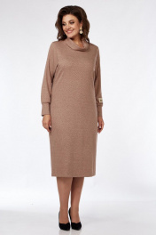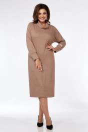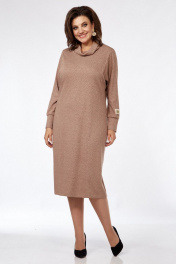 Демисезонное прямое платье из трикотажа с воротником хомут Matini 3.1558/1 капучино