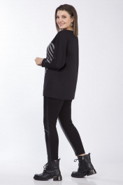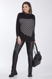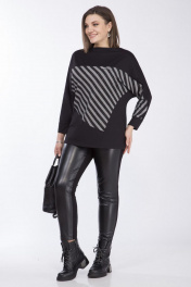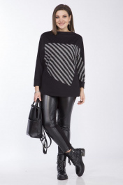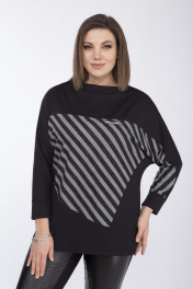 Блузка женская, свободного силуэта из трикотажной ткани. По переду выполнена фигурная вставка из декоративной ткани, вырез горловины "лодочка". Рукав "летучая мышь" с манжетой по низу. Длина по спинке 71см, длина рукава 62,5см. Реальные параметры изделия 54 от-118см, об-118см, 56 ог-122см, об-122см, 58 от-126см, об-126см.
