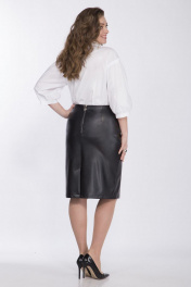 Юбка женская прямого силуэта из экокожи на замшевой основе. Пояс на обтачке из декоративной эластичной тесьмы. Перед юбки с крестообразным сечением из четырех деталей. Спинка на застежке молния в среднем шве, переходящем в шлицу. Длина изделия по боковому шву 64 см. Реальные замеры 52 от-92см, об-112см, 54 от-96см, об-116см, 56 от-100см, об-120см.