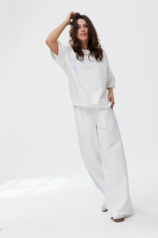 Брюки на каждый день из трикотажа с карманами MG Wear 4117 молочный/голубой_лампас