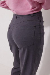 Зауженные брюки в цвете мокрый асфальт — это стильный и универсальный элемент гардероба. Они имеют застежку спереди, а так же дополнены боковыми карманами для удобства. Задняя часть украшена притачной кокеткой и накладными карманами, что добавляет интересные акценты в дизайн. Брюки выполнены из хлопкового полотна.