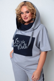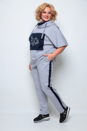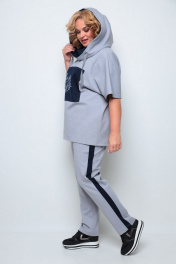 Ультра удобный и модный костюм, выполнен из качественного трикотажа, брюки с боковыми карманами и поясом на резинке. Джемпер свободного прилегания с цельнокроеным коротким рукавом, имеет объёмный воротник-капюшон, в качестве декора - интересный принт. Рекомендуем стирать при температуре не выше 40 градусов и не использовать машину сушку. Длина джемпера по спинке- 71см, длина брюк по боковому шву 105см, по шаговому 79см. Изделие подойдет на рост 170см.