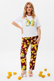 Брюки и футболка повседневный комплект из хлопка Michel chic 1380 белый,бордо