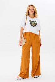 Белый женский брючный костюм с палаццо и контрастной горловиной Michel chic 1383 белый,рыжий