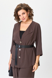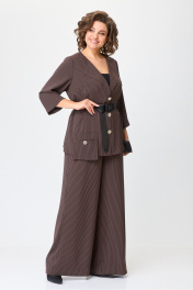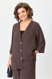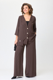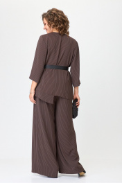 Комплект костюм из блузки и широких брюк с резинкой Michel chic 1386/1 коричневый,полоска