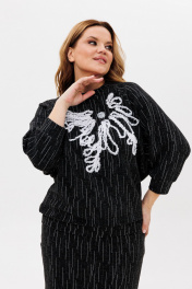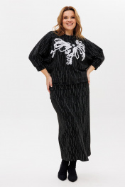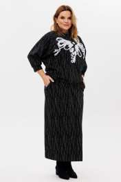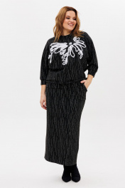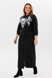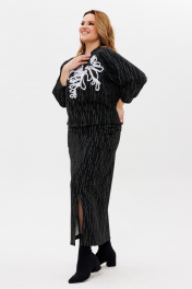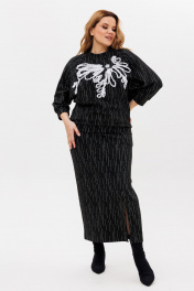 Джемпер и юбка из трикотажа с вышивкой и разрезом для различный случаев Michel chic 1407 черно-белый
