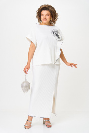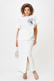 Эта элегантная двойка выполнена из рельефного трикотажа, идеально подчеркивающего фигуру, но при этом не сковывающего движений. Такой нарядный костюм отлично подойдет для ваших мероприятий , в нем вы будете неотразима. Горловина и низ юбки обработан строчкой улиткой. По переду юбки разрез, рукав спущенный с притачной манжетой. 🔹Свободный верх с декоративной отделкой и объемным цветком — изысканный акцент, который делает образ незабываемым. 🔹 Юбка-миди с разрезом спереди визуально вытягивает силуэт и добавляет шарма каждому шагу. 🔹 Трикотаж с фактурой — приятен к телу, не просвечивает, не мнется, отлично держит форму. 🔹 Универсальный белый с контрастной окантовкой — выбор для торжеств, отпуска и летних вечеров. Добавь яркие аксессуары — и ты готова к празднику. Надень с минимализмом — и он заиграет в повседневности. Длина юбки 100+/-1 см , длина блузки по спинке 65см .