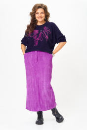 Этот элегантный и модный комплект станет ярким акцентом в вашем гардеробе! Комплект включает в себя яркий темно-синий джемпер с рукавами реглан «летучая мышь» и изящную юбку в пурпурных тонах, выполненную из мягкого, приятного к телу вельвета. ◾Темно-синий джемпер украшен изящной вышивкой, придавая образу оригинальность и шарм. Его рукава реглан «летучая мышь» создают ощущение легкости и современности, а насыщенный цвет подчеркнет вашу индивидуальность и добавит яркости в любой образ. ◾Юбка из плотного вельвета в рубчик не только выглядит очень стильно, но и визуально удлиняет силуэт, делая ваш образ более стройным и изящным. Эта универсальная модель отлично садится по фигуре, подчеркнет достоинства и обеспечит комфорт в течение всего дня. Весь этот ансамбль — идеальный выбор для тех, кто ценит современный стиль, качество и комфорт. Дополнив его подходящими аксессуарами, вы легко создадите эффектный образ для повседневных дел, деловых встреч или особых мероприятий. Такой комплект подчеркнет вашу индивидуальность и позволит выглядеть безупречно в любой ситуации. Преобразите свой гардероб уже сегодня — выберите универсальный и яркий костюм, который всегда поможет оставаться в тренде! Длина джемпера по спинке 65 см+\- 1 см, длина рукава от горловины 62 см +\- 1 см. Длина юбки по боковому шву 96 см+\- 1 см. Изделие подойдет на рост 170 см.