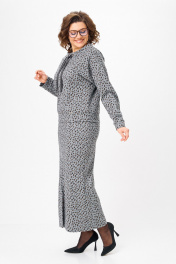 Плотный трикотаж хорошо держит силуэт, не «плывёт» и не вытягивается, при этом остаётся комфортным в движении. Принт — деликатный, небанальный, выглядит дорого и актуально вне сезона. Верх свободного кроя. В горловине — декоративные блочки и втянутая тесьма, которая добавляет образу характер и визуальный акцент, не утяжеляя изделие. Деталь работает как украшение и делает образ собранным без лишней строгости. Юбка макси с разрезом добавляет динамики и лёгкости силуэту. Костюм легко адаптируется под разные стили: — с кроссовками — городской casual — с ботинками или лоферами — smart everyday — с пальто или короткой курткой — образ уровня prêt-à-porter Почему это must-have: • плотный формодержащий трикотаж • комфорт без потери внешнего вида • выразительная горловина с блочками и тесьмой • современный небанальный принт • вытягивает фигуру • носится комплектом и по отдельности Отличное качество. Ограниченный тираж. Модель быстро разбирают — если вы искали удобный, но эффектный костюм «не как у всех», вы его нашли. Длина джемпера по спинке 60 см +/- 2 см, длина рукава 68 см +\- 1 см, длина юбки по боковому шву 95 см. Изделие подойдет на рост 170 см.