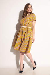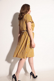 Летнее платье с расклешенной юбкой и карманами из легкой ткани Michel chic 2007 горчичный