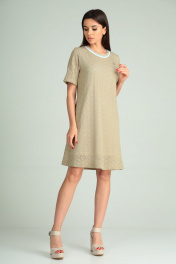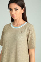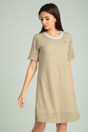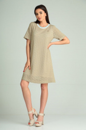 Платье прямое из кружевного трикотажа с брошей Michel chic 2098 бежевый