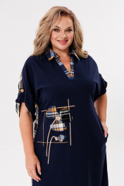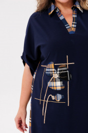 Универсальное платье в стиле «casual». Изделие выполнено из двух скомпонованных материалов — однотона и клетки. Перед и спинка цельнокроеные, спинка длиннее переда. Горловина с рубашечным воротником и V-образным вырезом. Плечо спущенное, рукав втачной длиной 3/4, застегивающийся на пату и пуговицу. По верху спинки имеется стачная встречная складка, благодаря которой имеется небольшое клешение. По переду платье украшено вышивкой из пайеток и ткани-компаньона. В боковых швах имеются карманы, а также боковые разрезы. Изделие может сочетаться как с кедами, лоферами, так и туфлями. Универсальность и практичность платья сделают его любимым в Вашем гардеробе. Длина по спинке 123+-1см, длина рукава 49+-1см. Изделие подойдет на рост 170 см.