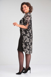 Платье нарядное двухслойное с блестящей лентой на рукаве Michel chic 2136 черная-абстракция - фото 6
